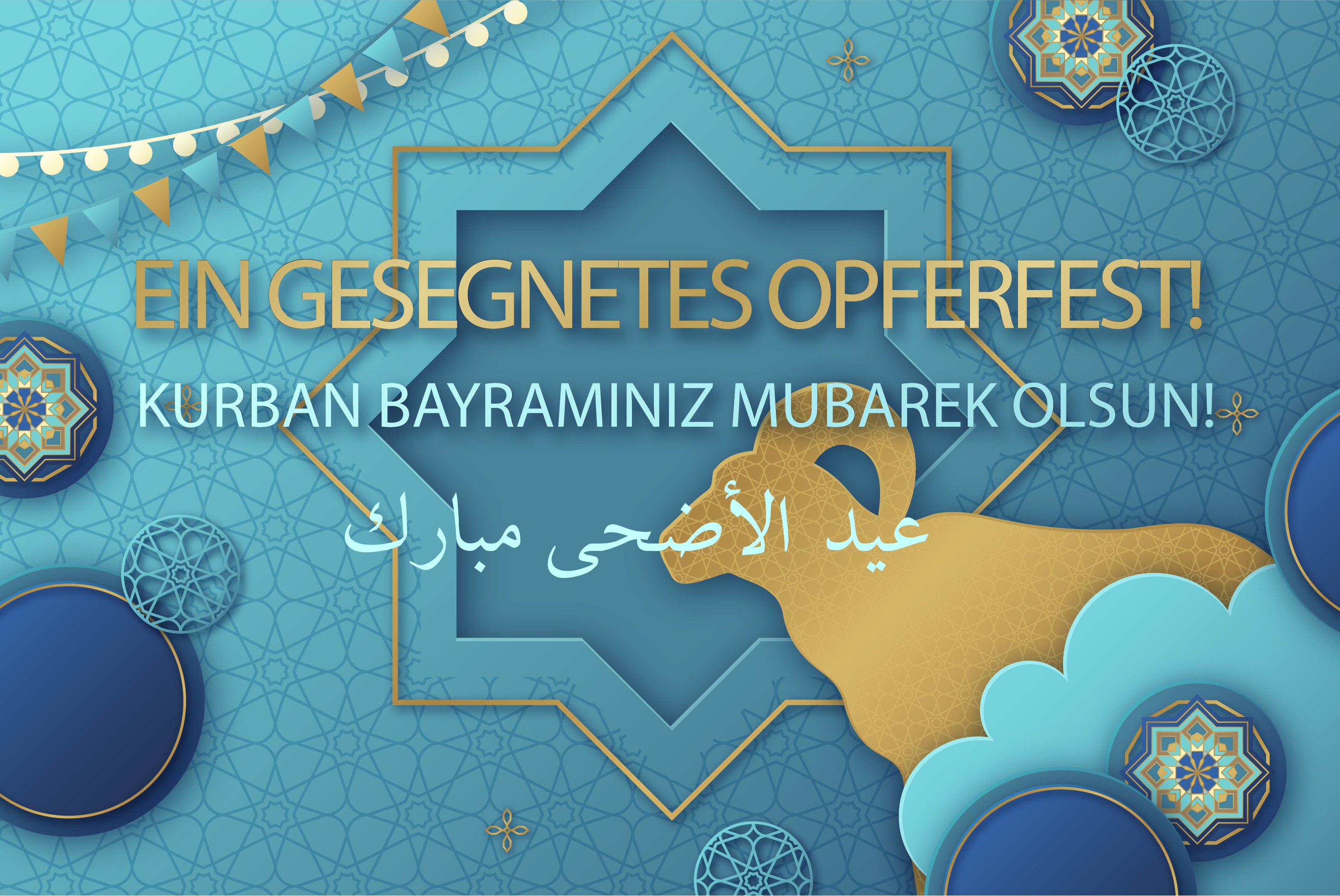 Der Landesverband der Islamischen Kulturzentren Baden-Württemberg wünscht allen Muslimen ein gesegnetes und friedvolles Opferfest. Das Opferfest ist für Muslime ein Fest der Liebe, des Friedens, der Versöhnung, der Solidarität, der Fürsorge, des Teilens und der Unterstützung von Armen und Bedürftigen.